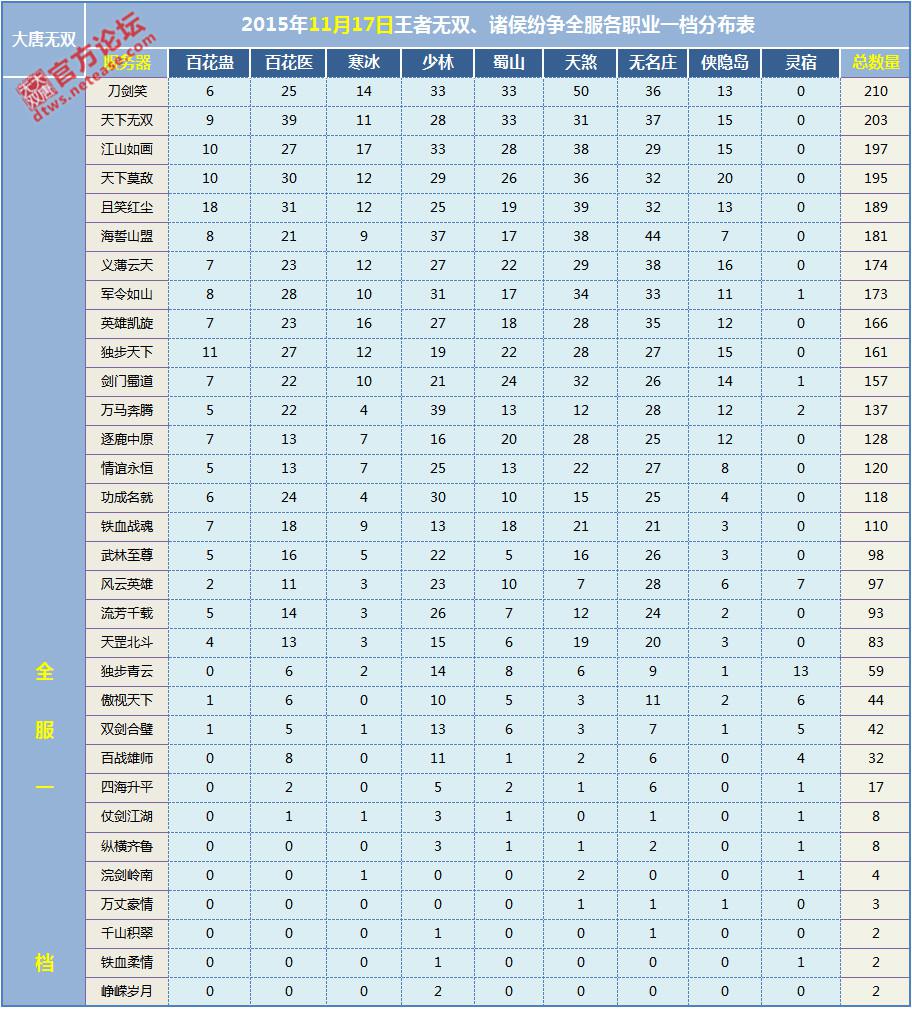 【11月18日】全服各职业一档分布表