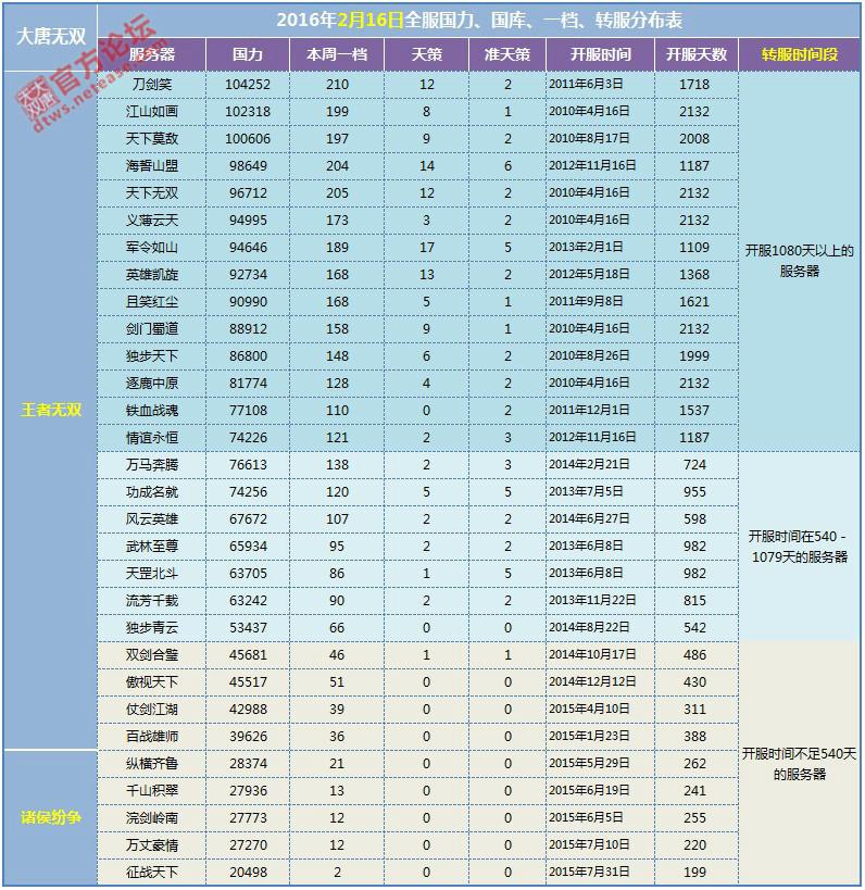 【2月16日】王者、诸侯全服国力、一档、天策、转服分布表 原帖地址:http://dtws.netease.com/thread-673897-1-1.html