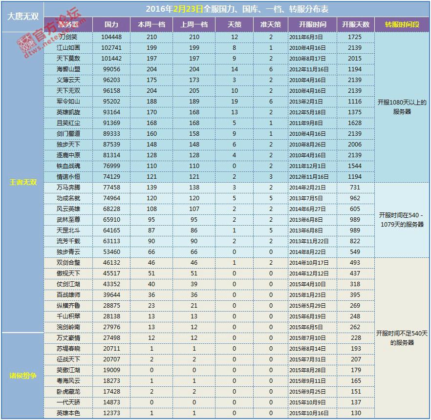 【2月23日】王者、诸侯全服国力、一档、天策、转服分布表 原帖地址:http://dtws.netease.com/thread-677050-1-1.html