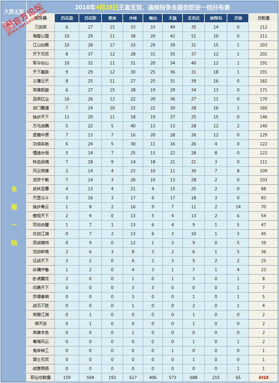 【4月26日】全服各职业一档分布表