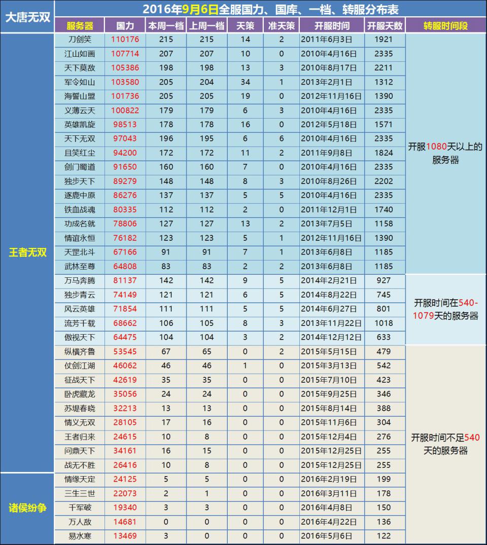 【9月6日】王者、诸侯全服国力、一档、天策、转服分布表 原帖地址:http://dtws.netease.com/thread-747674-1-1.html