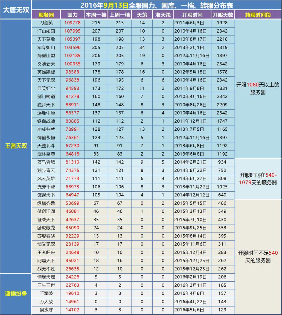 【9月13日】王者、诸侯全服国力、一档、天策、转服分布表 原帖地址:http://dtws.netease.com/thread-751529-1-1.html