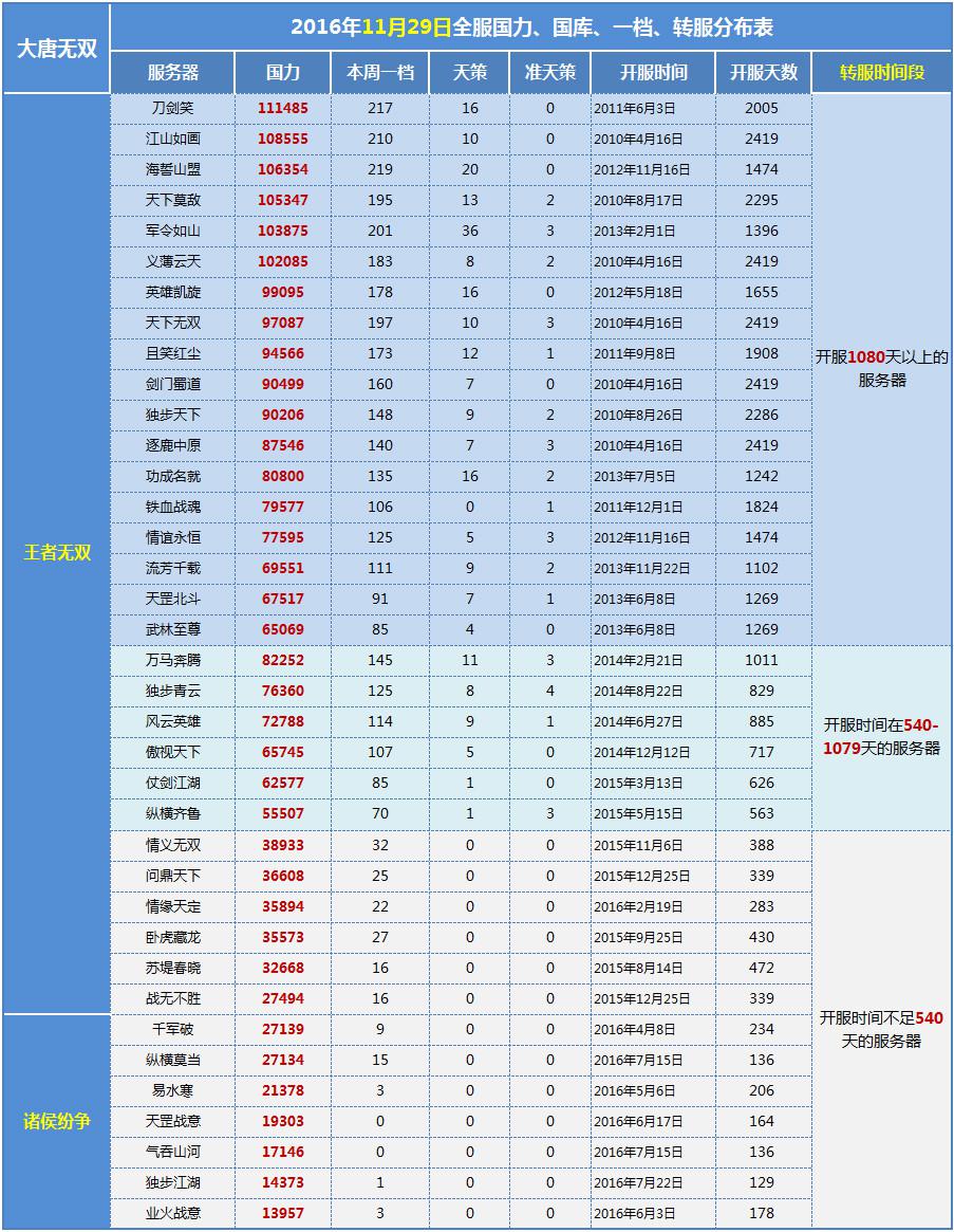 【11月29日】王者、诸侯全服国力、一档、天策、转服分布表 原帖地址:http://dtws.netease.com/thread-787703-1-3.html